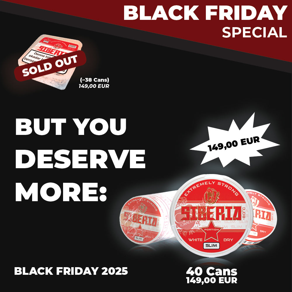 Siberia is one of the strongest snus brands and is therefore only recommended for experienced snus users. The special thing about Siberia Snus is the high nicotine content. The products contain from 20 mg/g to 40 mg/g nicotine. This product is almost a classic, which is available in Germany and the EU as Siberia Chewing Bags.